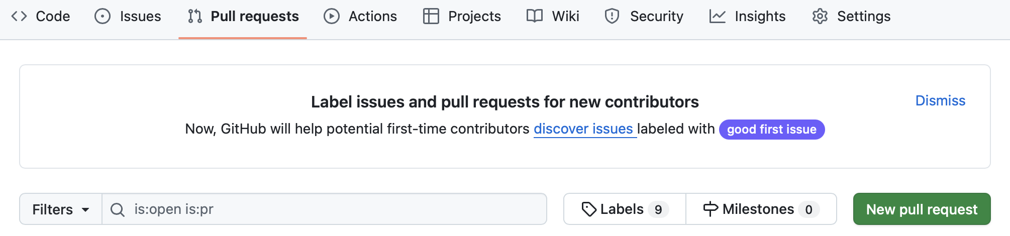 - Navigate to your repository at GitHub.com. Select the ‘Pull requests’ tab.